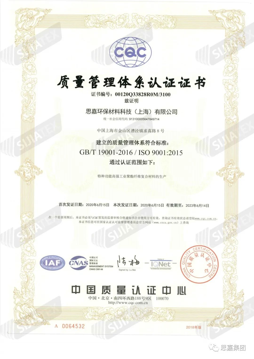 ISO9001質(zhì)量管理體系標(biāo)準(zhǔn)和ISO14000環(huán)境管理體系標(biāo)準(zhǔn)是國際公認(rèn)的對商品或服務(wù)進行質(zhì)量、環(huán)保評價的管理體系標(biāo)準(zhǔn)。嚴(yán)格按照該標(biāo)準(zhǔn)運營,有助于企業(yè)進一步鞏固自身管理體系,適應(yīng)商品經(jīng)濟擴大和日益國際化的市場需求。近期,上海思嘉順利通過了ISO9001質(zhì)量管理體系和ISO14000環(huán)境管理體系認(rèn)證。