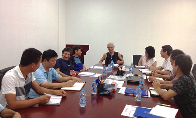 8月25日,集團主席林生雄、副總裁兼總工程師黃萬能,技術總監(jiān)、網絡控制總監(jiān)及車間技術與生產負責人齊聚會議室,聆聽意大利工程師Marino先生、Matteo先生和Paolo先生為大家特地準備的技術工藝流程和控制系統(tǒng)培訓。