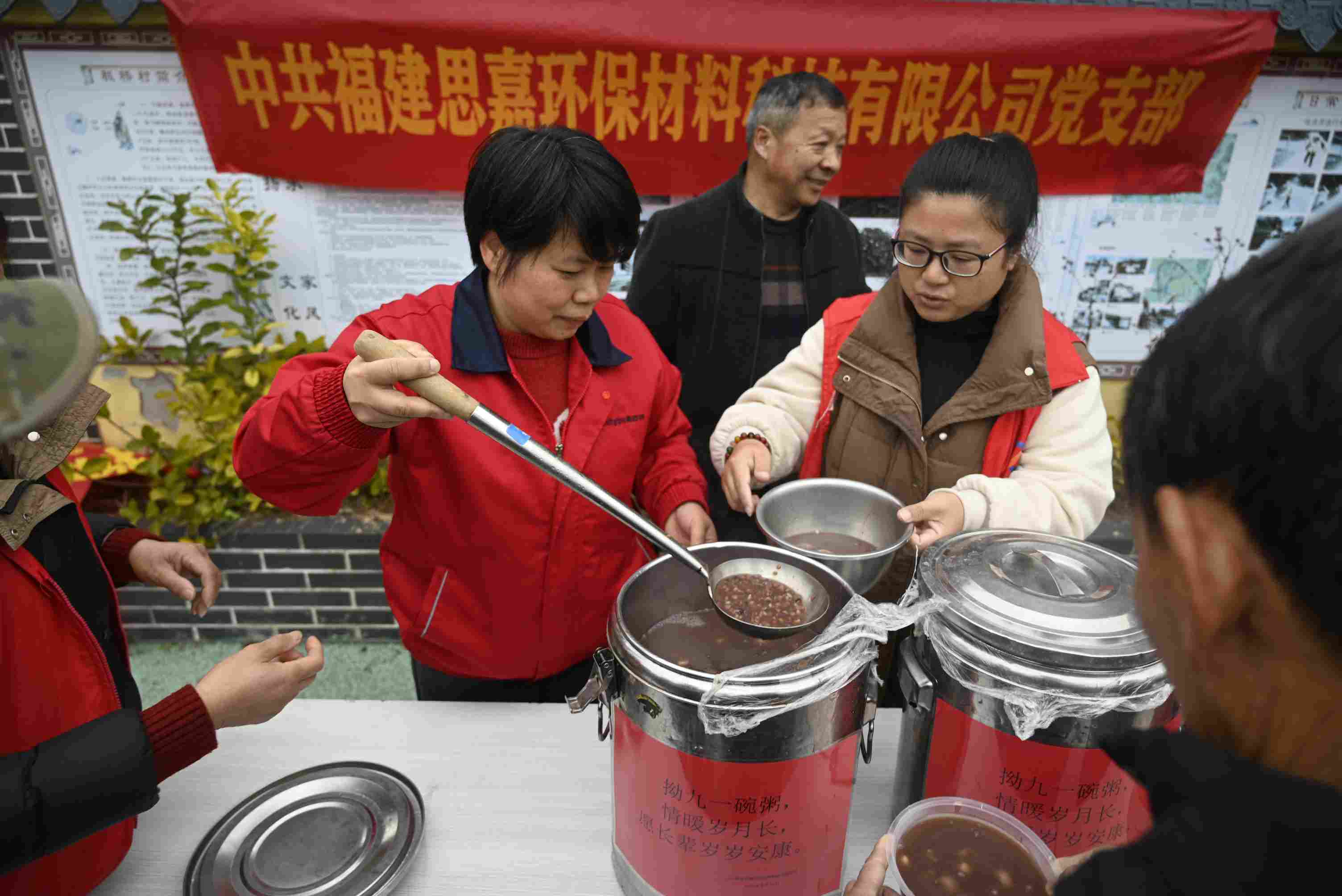 在常態(tài)化幫扶之外,思嘉更將公益融入傳統(tǒng)民俗,讓溫暖在節(jié)日中傳遞。每逢拗九節(jié),思嘉便會(huì)聯(lián)合周邊村委會(huì)開展“拗九暖春”公益活動(dòng)?;顒?dòng)現(xiàn)場(chǎng)設(shè)置了專門的發(fā)放點(diǎn),思嘉人穿戴整齊,有序?qū)竞玫霓志胖嗍⑦M(jìn)碗里,逐一送到前來(lái)領(lǐng)取的村民手中。思嘉人將一碗碗熬煮入味的拗九粥送到村民手中,用傳統(tǒng)美食傳遞鄰里溫情,讓全村老少在春日里感受到濃濃的關(guān)愛。